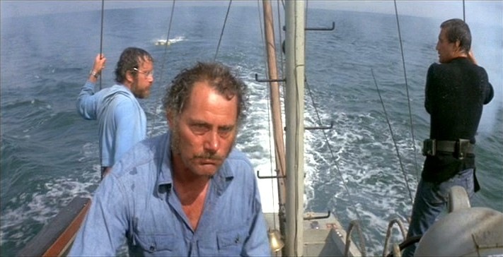 The genius of JAWS, and what director Steven Spielberg and his writers (including Carl Gottlieb, Howard Sackler, and John Milius) and composer (John Williams) and cinematographer (Bill Butler) did with Peter Benchley’s book, was not only that they managed to wring every last horror moment out of the killer-shark scenario, but also the way that they welded it onto the American nautical-adventure tradition that goes all the way back to Melville’s Moby Dick but also includes all of the swashbuckling pirate movies of the 1940s, with the unlikely Roy Scheider and Richard Dreyfuss standing in for Errol Flynn.