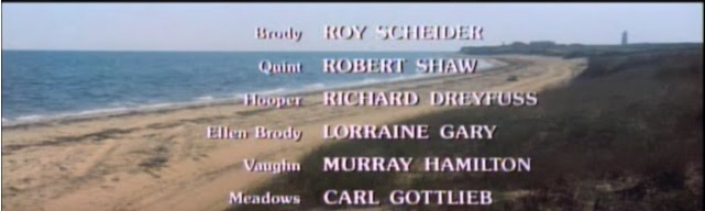 One unusual thing about JAWS, owing possibly to its status as the arguable first movie of the blockbuster era and as a transitional moment between Old and New Hollywood, is how its credits work. You don’t get much up top, and by the time the end credits start to roll, it’s a brisk run down Scheider, Shaw, and Dreyfuss, with just a few more names and credits before the lights come up.